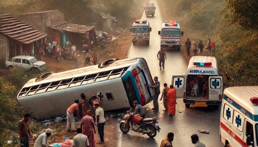 जानकारी के अनुसार लोगों से भरी एक बस आदिवासियों के धार्मिक स्थल रजरप्पा के लुगुबुरू से पूर्वी सिंहभूम लौट रही थी. इस दौरान बस गोला के बरलंगा थाना क्षेत्र के रम्हारु में पलट गई.