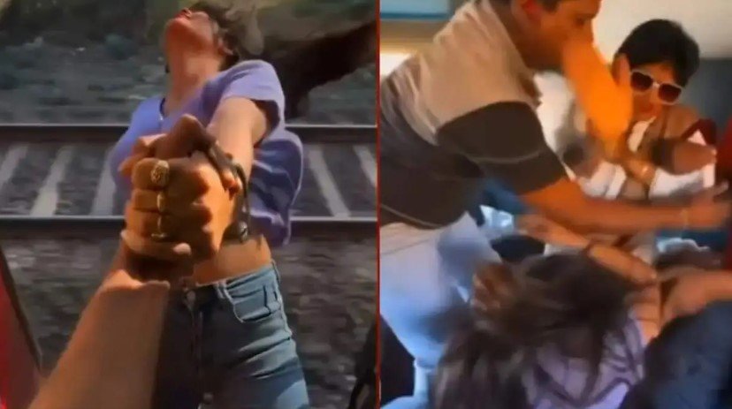 वायरल वीडियो में देखा जा सकता है कि एक लड़की ट्रेन के गेट पर खड़ी है और एक लड़के का हाथ पकड़कर लटक रही है। लड़का ही वीडियो रिकॉर्ड कर रहा है। वीडियो बनाने के लिए लड़की पूरी तरह हाथ पकड़कर लटक जाती है, लेकिन अगले ही पल उसकी पिटाई होने लगती है।