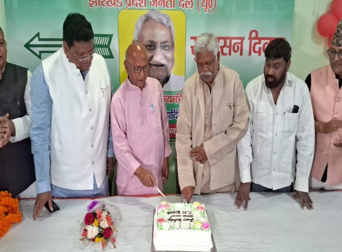 इस अवसर पर विधायक सरयू राय और प्रदेश अध्यक्ष खीरू महतो ने जन्मदिन का केक काटा और नीतीश कुमार को बधाई देते हुए उनकी लंबी उम्र की कामना की.
