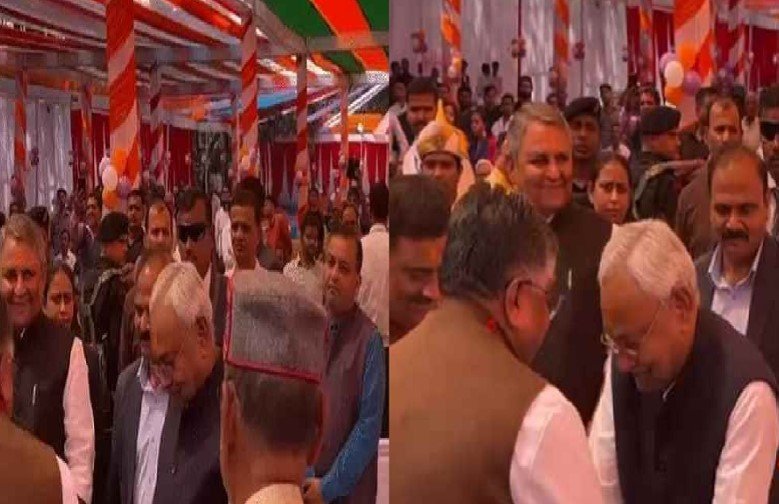 नीतीश कुमार के साथ जेडीयू के राज्यसभा सांसद संजय झा भी मौजूद थे. ज्योंहि नीतीश कुमार झुकने लगे तो संजय झा और खुद रविशंकर प्रसाद ने उन्हें रोका. इसके बाद नीतीश कुमार ने रविशंकर प्रसाद को लगे से लगाया. सीएम के आसपास मौजूद सभी लोग यह नजारा देखकर हैरान हो गए.