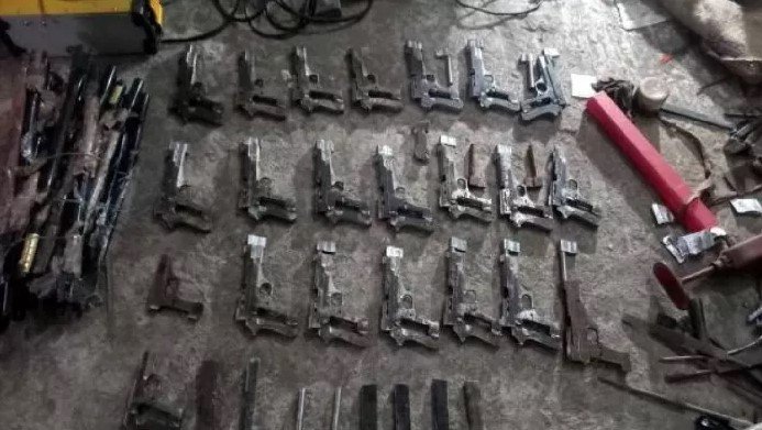 छापेमारी के दौरान छह निर्मित पिस्तौल, अठारह अर्ध-निर्मित पिस्तौल, बैरल बनाने का सामान और अन्य हथियार निर्माण की सामग्री बरामद की गई. इसके अलावा, भारी मात्रा में अवैध अंग्रेजी शराब, बियर और पैकिंग के लिए खाली डिब्बे व रैपर भी जब्त किए गए.