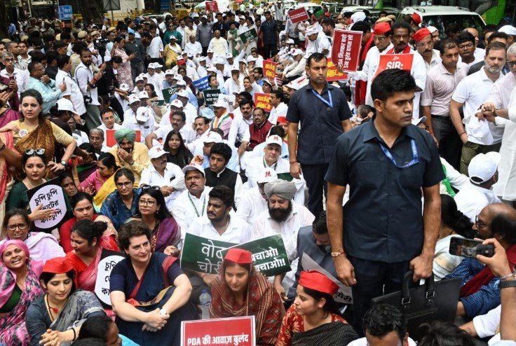 डेस्क- वोटर वेरिफिकेशन और चुनाव में वोट चोरी के आरोप पर विपक्ष के 300 सांसदों ने सोमवार को संसद से चुनाव आयोग के ऑफिस तक मार्च निकाला। इस दौरान राहुल गांधी, प्रियंका गांधी, अखिलेश यादव समेत कई विपक्षी सांसदों को हिरासत में ले लिया गया।
