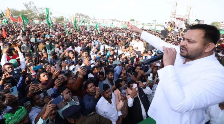 जनसभा को संबोधित करते हुए तेजस्वी यादव ने कहा, “यह बिहार की धरती है, जो लोकतंत्र की जननी मानी जाती है. दो भाजपाई, चुनाव आयोग के साथ मिलकर यहां लोकतंत्र को खत्म करने की कोशिश कर रहे हैं.