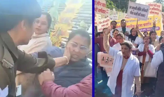 डेस्क- उत्तराखंड की राजधानी देहरादून में नर्सिंग अभ्यर्थियों के शांतिपूर्ण धरने के दौरान एक पुलिस कांस्टेबल द्वारा महिला अभ्यर्थी को थप्पड़ मारने की घटना ने माहौल गरमा गया. अपनी नियुक्तियों की मांग को लेकर अभ्यर्थी बीते कई दिनों से शांतिपूर्ण प्रदर्शन कर रहे थे.