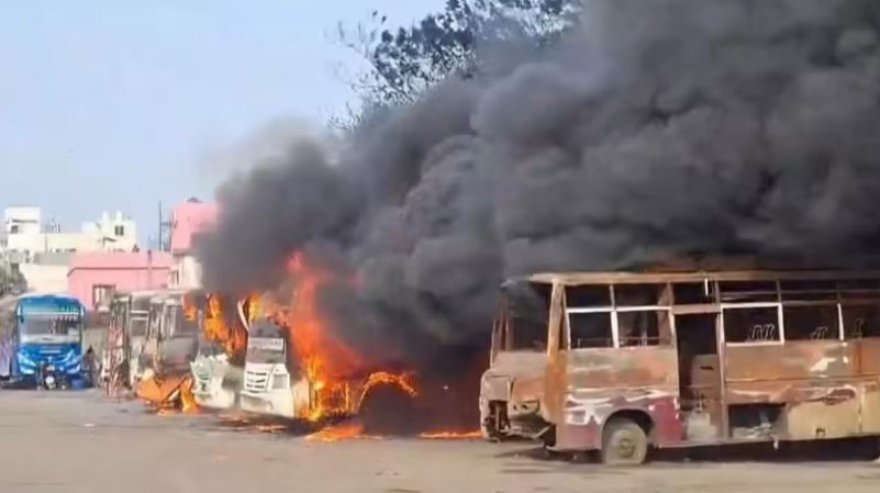 एक साथ छह बसों में आग लगने की घटना को एक बड़ी साजिश के रूप में देखा जा रहा है. बस एजेंट मोहम्मद सरफराज ने बताया कि भारी नुकसान हुआ है.