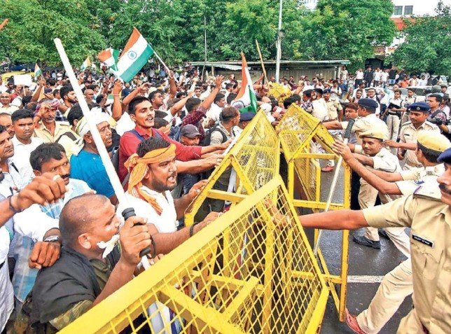 दोपहर बाद प्रदर्शन उग्र हो गया। प्रदर्शनकारियों ने जेपी गोलंबर पर लगाई गई बैरिकेडिंग तोड़कर डाकबंगला चौराहा की ओर बढ़ने लगे। यहां पुलिस और प्रदर्शनकारियों के बीच धक्का मुक्की हुई। इसके बाद पुलिस ने प्रदर्शनकारियों पर लाठीचार्ज कर सबको खदेड़ दिया।