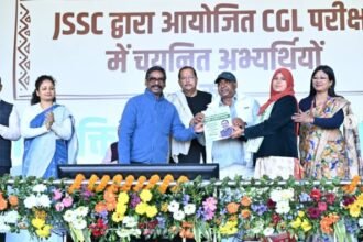 रांची- रांची के ऐतिहासिक मोरहाबादी मैदान में आयोजित भव्य समारोह में मुख्यमंत्री हेमंत सोरेन ने JSSC CGL-2023 के चयनित 1927…
